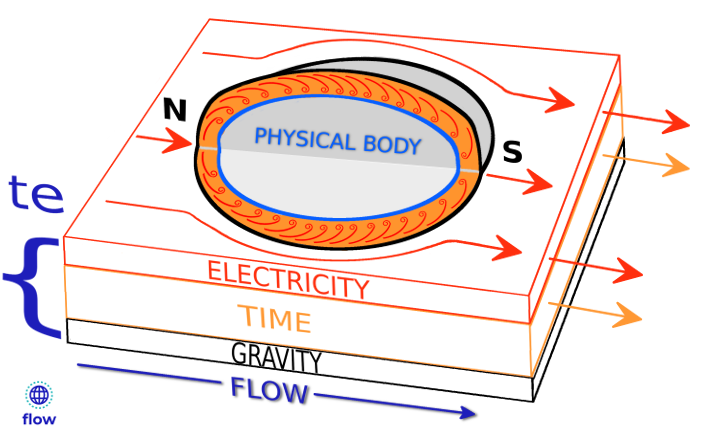like attraction between protonic energy and develops within its own realm. Both share connection with the physical realm where we draw our direct experience. There is a small gravimetric effect that arises in electrons, but this is not within the domain of electromagnetism. For a more detailed explanation, please read Introduction to Flow Theory.